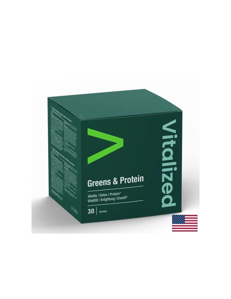 Greens & Protein Vitalized е специално разработена формула, която комбинира концентрирани екстракти от зелени суперхрани като ечемична трева, спанак, броколи, спирулина, пшенична трева, кейл и хлорела с висококачествени протеини и естествен витамин C от ацерола. Тази мощна комбинация подпомага енергията, мускулната функция и здравето на черния дроб.