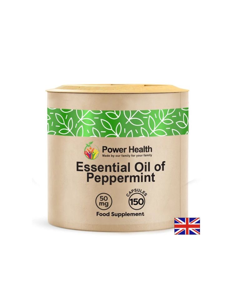 Essential Oil of Peppermint на Power of Health съдържа етерично масло от мента /Mentha piperita/, добре познато със своя релаксиращ ефект върху гладката мускулатура на стомашно-чревния тракт. Това действие улеснява преминаването на храната през червата, намалява спазмите и газовете. Ментата има спазмолитично действие, което я прави незаменим помощник при състояния като подуване и раздразнен стомах.