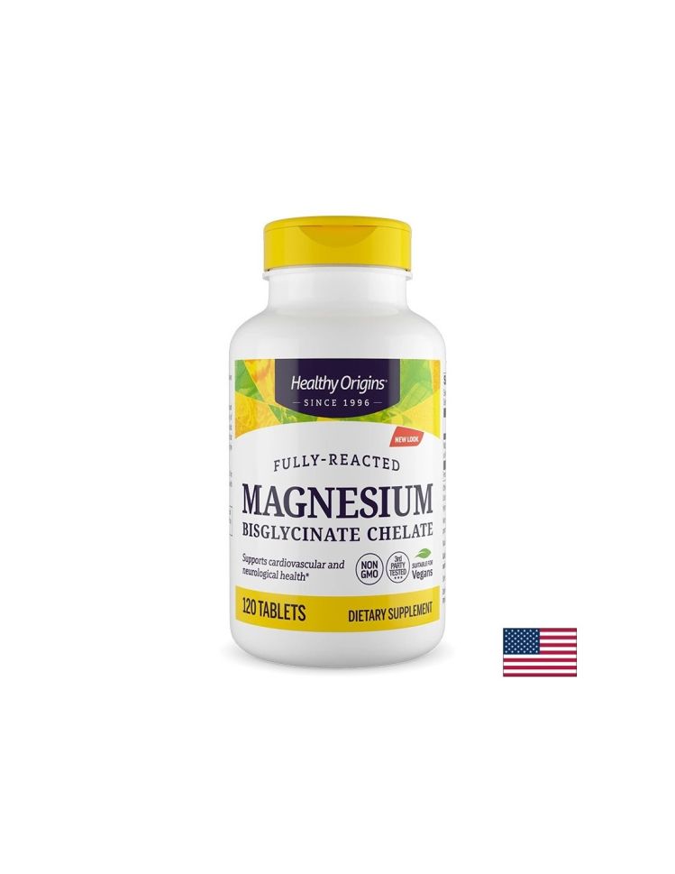 Магнезий (бисглицинат хелат) 100 mg на американската компания Healthy Origins съдържа магнезий под формата на магнезиев бисглицинат хелат – изключително добре усвоима и щадяща за стомаха форма на магнезий, която не предизвиква стомашен дискомфорт и се абсорбира по-ефективно от червата. Грижи се за нормалното функциониране на нервната система, предотвратява симптоми, свързани със стрес, мускулни схващания и нарушения в съня. Има успокояващо действие върху нервната система и е особено подходяща при стрес, безпокойство, тревожност и хронична умора. Освен това тази хранителна добавка регулира психо-емоционалния баланс, допринася за регулиране на електролитния баланс в тялото, подпомага нормалното кръвообращение и здравословните нива на кръвното налягане.