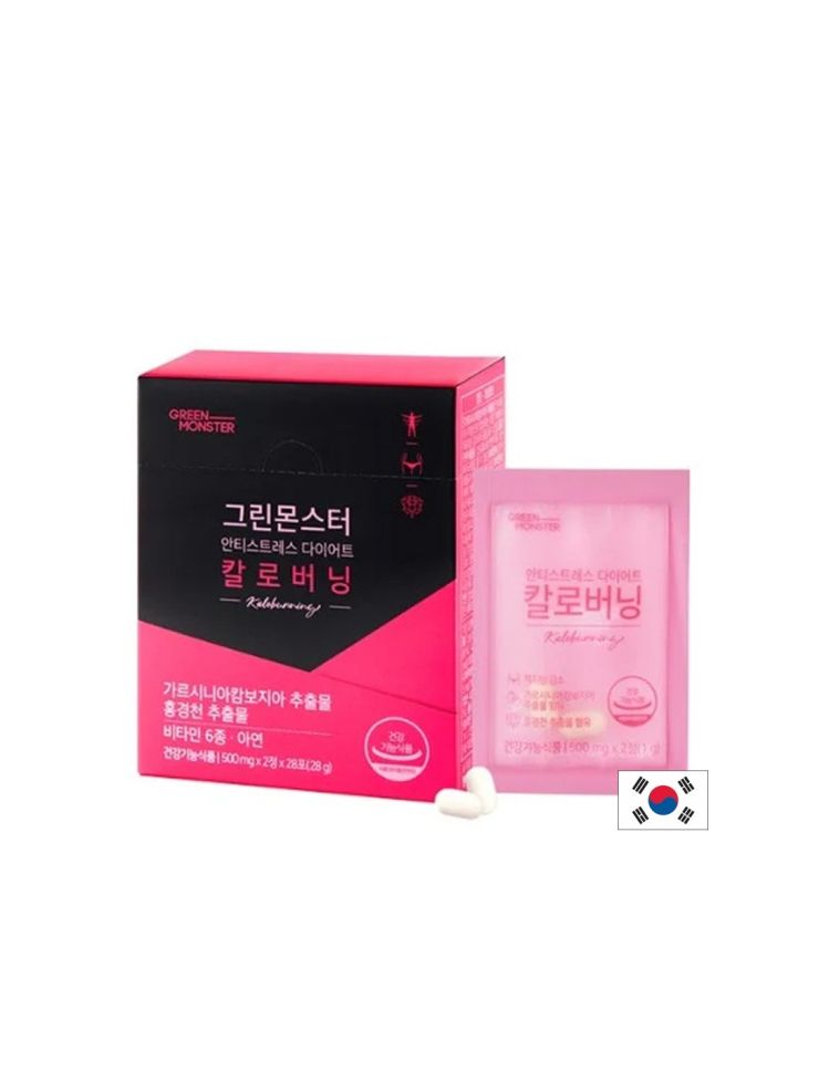 Green Monster Anti-Stress Diet KALO BURNING - Изгаряне на мазнини е хранителна добавка под формата на таблетки, която допринася за поддържане на нормално телесно тегло и мазнини в организма. Съдържа в състава си витамини от група B, цинк, екстракт от Гарциния Камбоджа (богат на хидроксилимонена киселина) и стандартизиран екстракт от златен корен (Rhodiola rosea), известен със своето адаптогенно действие. Формулата спомага за ускоряване на метаболизма и изгарянето на мазнини, регулира апетита и подпомага редуцирането на телесното тегло, като същевременно намалява стреса и умората. Освен това спомага за намаляване чувството на умора и повишава енергията. Продуктът е подходящ за активни хора, стремящи се към поддържане на добра форма, устойчивост на стрес и хормонален баланс.