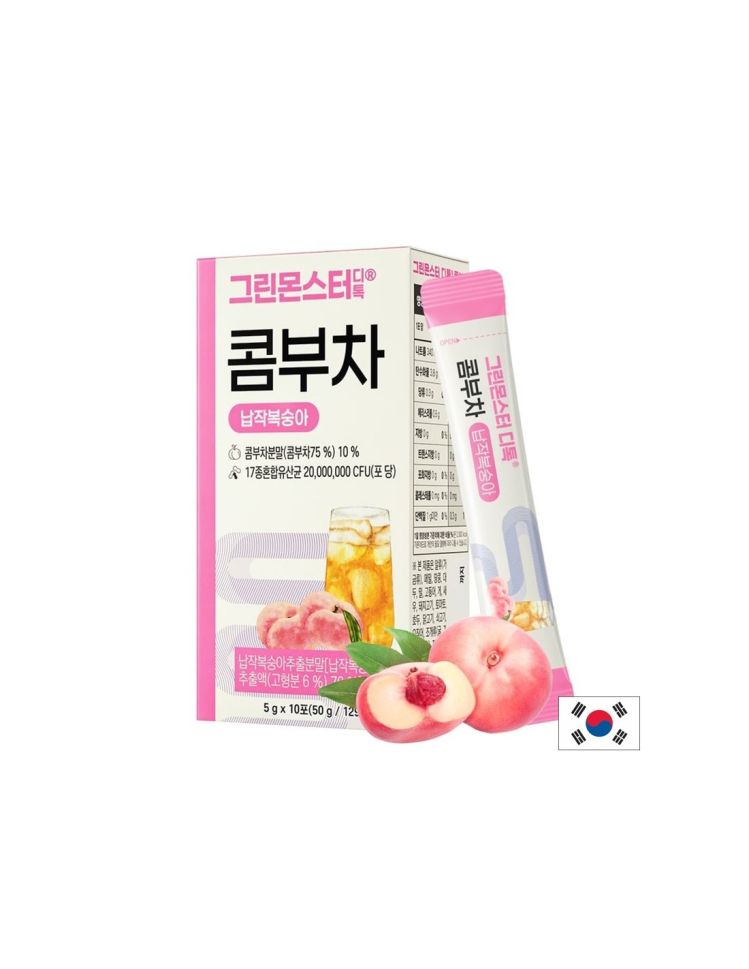 Green Monster Detox Kombucha Flat Peach - Детокс комбуча с праскова, 10 сашета х 5 g
