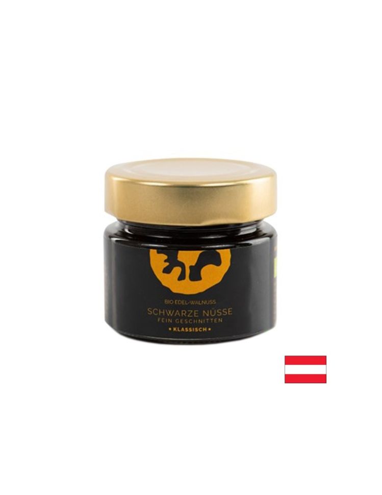 Фино нарязани черни орехи, пастьоризирани и овкусени с натурална ванилия и подбрани подправки – създадени по традиционна австрийска рецепта. Ръчно приготвен гурме специалитет без глутен, консерванти и изкуствени добавки