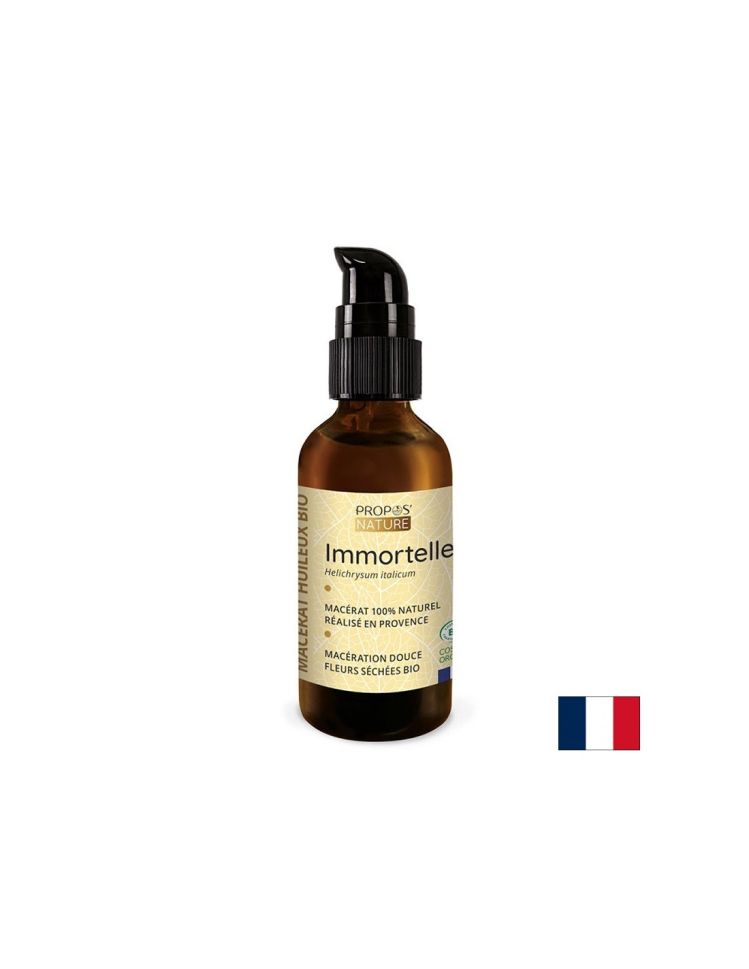 Ръчно добит маслен екстракт от Helichrysum italicum в био слънчогледово масло – успокоява, подмладява и подпомага възстановяването на чувствителна или зряла кожа. Със 100% натурален произход от Прованс, Франция