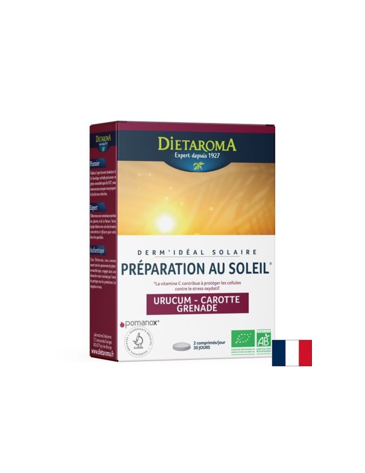 Натурален комплекс с анато (растителен пигмент), лилав морков, нар и витамин C – подпомага пигментацията, защитава клетките от оксидативен стрес и подготвя кожата за излагане на слънце. Идеален за равномерен, дълготраен тен без изгарянеПромоционалната цена се отнася за продукти със срок на годност до 31.03.2026 г. и до изчерпване на количествата.Ако желаете да поръчате продукт на редовна цена, моля да ни информирате в забележка.