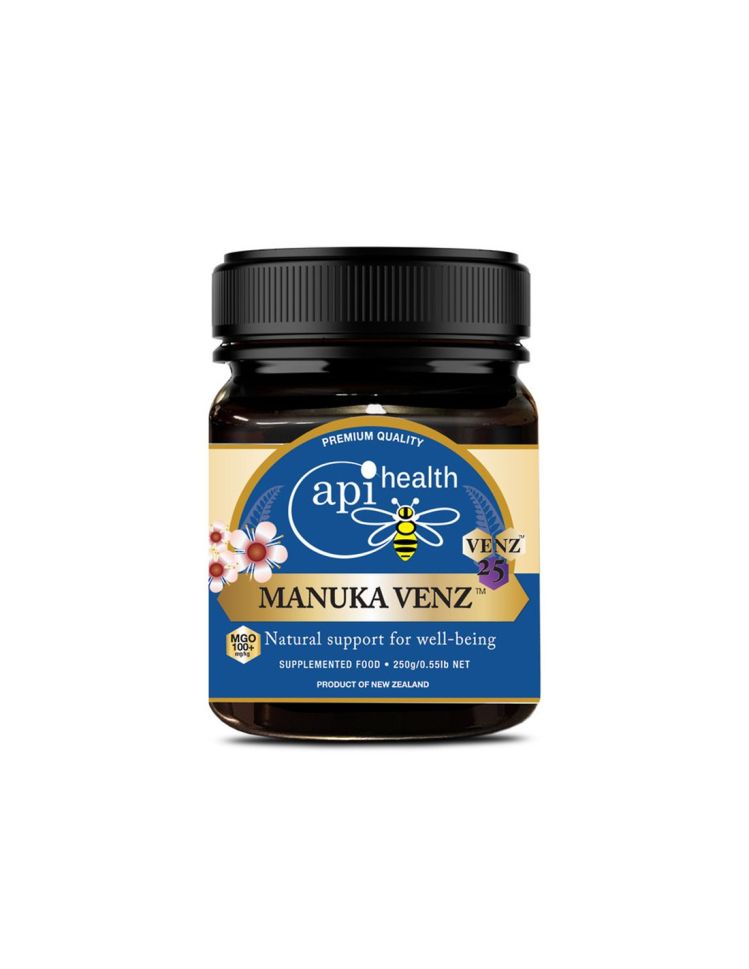 Manuka VENZ на новозеландската компания ApiHealth е подсилен многоцветен пчелен мед от манука с доказани ползи върху имунната система, ставите и общата жизнена активност. Медът е с контролирано съдържание на метилглиоксал (MGO 100 mg/kg) и стандартизирана доза пчелна отрова (12.5 mg, 25 ppm) за синергично въздействие.