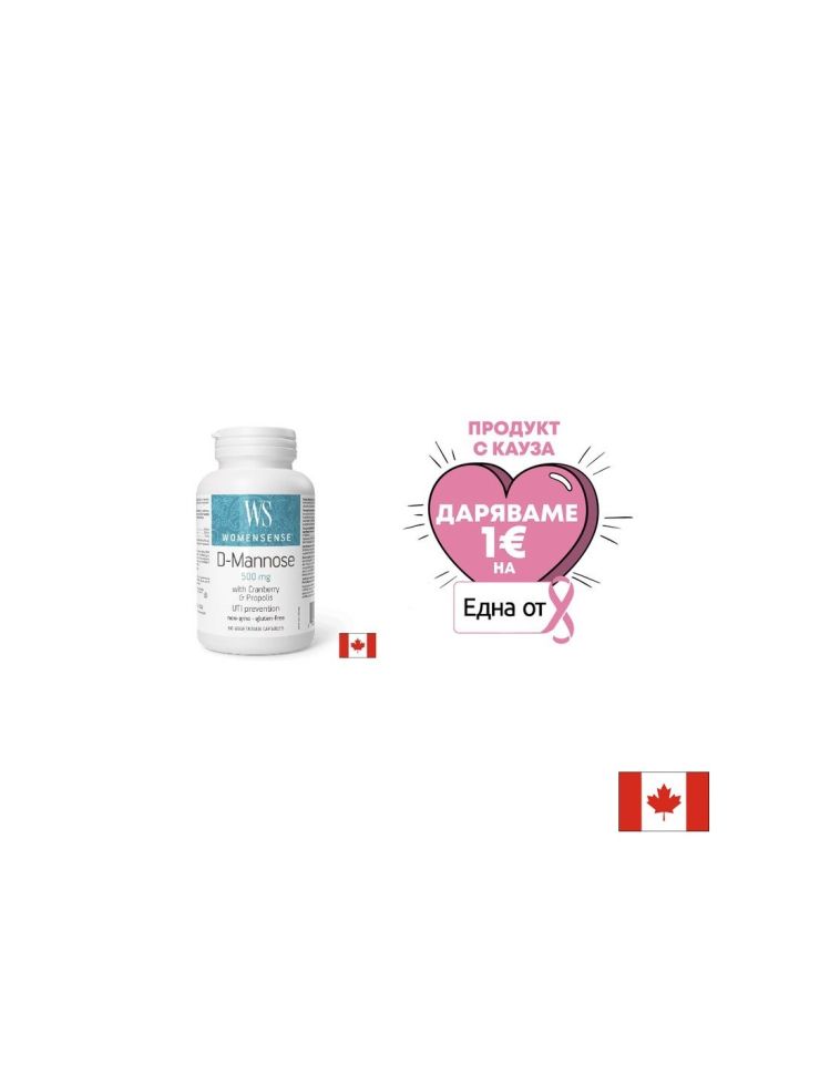D-маноза 2000 mg + Червена боровинка 800 mg + Прополис 200 mg – Здрав уринарен тракт, 60 капсули