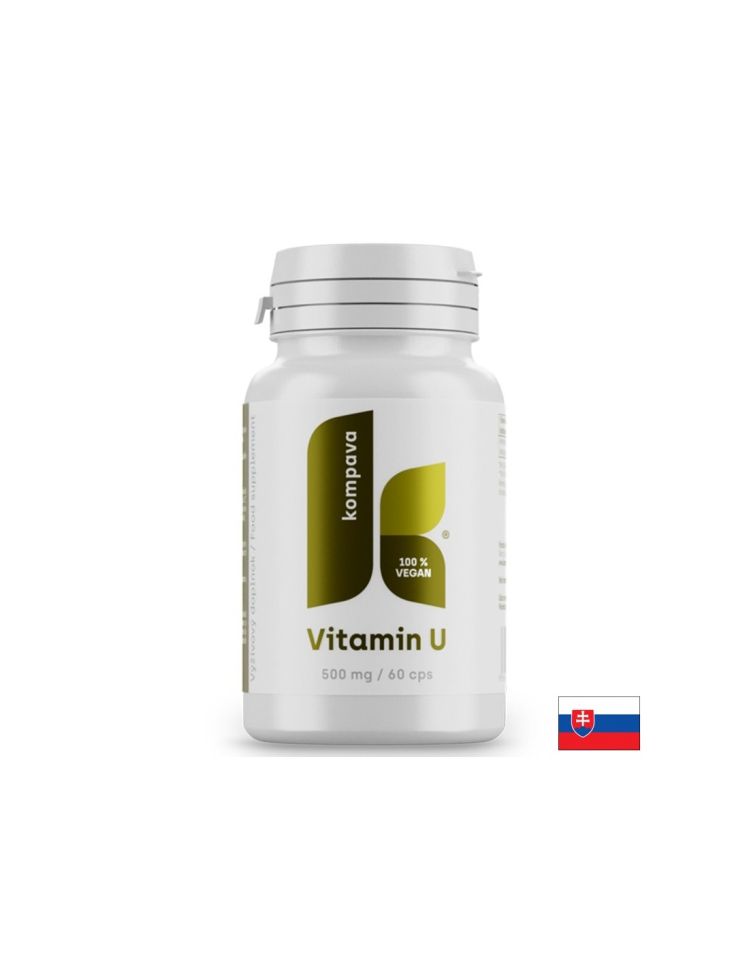 Витамин U е хранителна добавка, съдържаща Метилметионин сулфониев хлорид, който е известен под търговското наименование Витамин U. Този продукт е създаден да подпомага нормалното състояние и функцията на стомашно-чревния тракт, като се фокусира върху защитата на стомашната лигавица. Подходящ е за вегани.