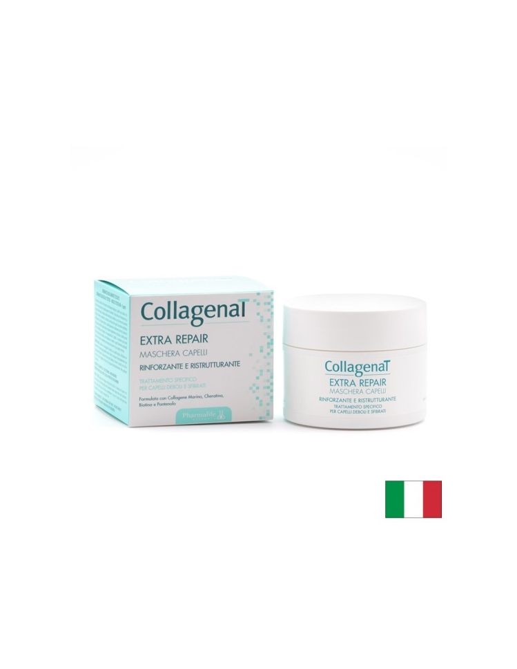 CollagenaT Extra Repair е възстановяваща маска за коса, подходяща при суха, увредена или химически третирана коса. Формулата с хидролизиран колаген, кератин, биотин, кокосово масло, алое вера и витамин Е подпомага гладкостта, мекотата и усещането за по-жизнена коса. Отлична за дълбоко подхранване на коси, които са изгубили еластичност и блясък