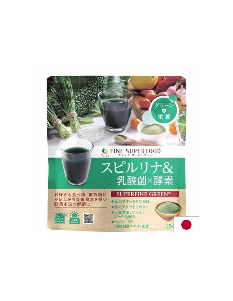 Fine Superfood Spirulina Plus комбинира спирулина, ечемична трева, кейл, ензими от ферментирали плодове и 5 млрд. млечнокисели бактерии. Формулата е създадена за хора, които искат да повишат тонуса и енергията и да обогатят дневното си меню с полезни растителни компоненти. Съдържа естествен бета-каротин и желязо от зелените храни