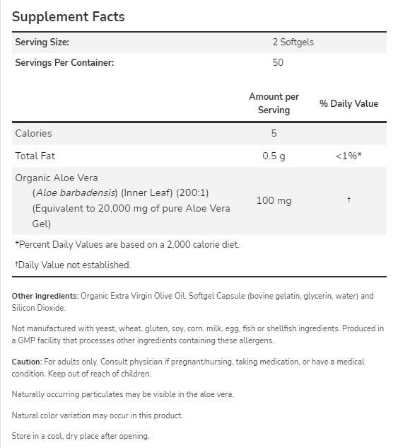 NOW Foods Aloe Vera Gels [250 Гел капсули, 125 Дози]
