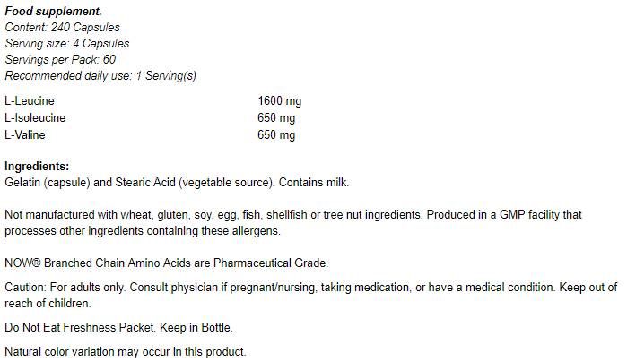 NOW Foods Branched Chain Amino Acids / BCAA [240 капсули, 60 Дози]
