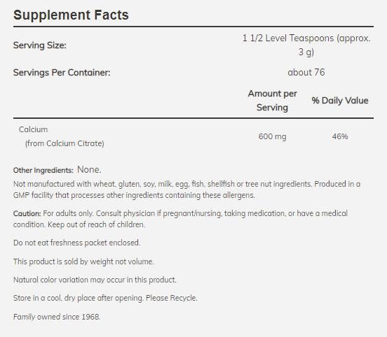 NOW Foods Calcium Citrate Powder [227 грама, 76 Дози]