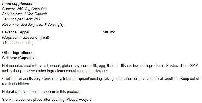 NOW Foods Cayenne 500 mg [250 капсули, 250 Дози]