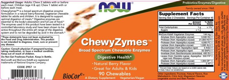 NOW Foods ChewyZymes [90 Дъвчащи таблетки]