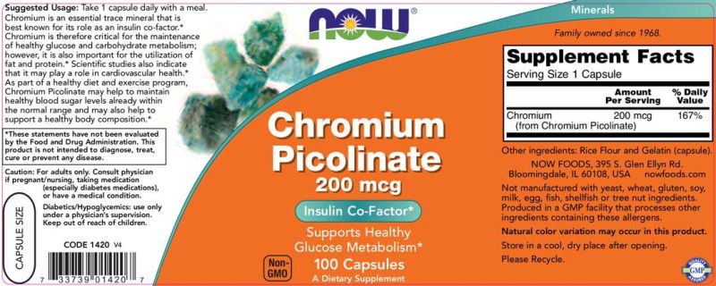 NOW Foods Chromium Picolinate 200 mcg [100 капсули]