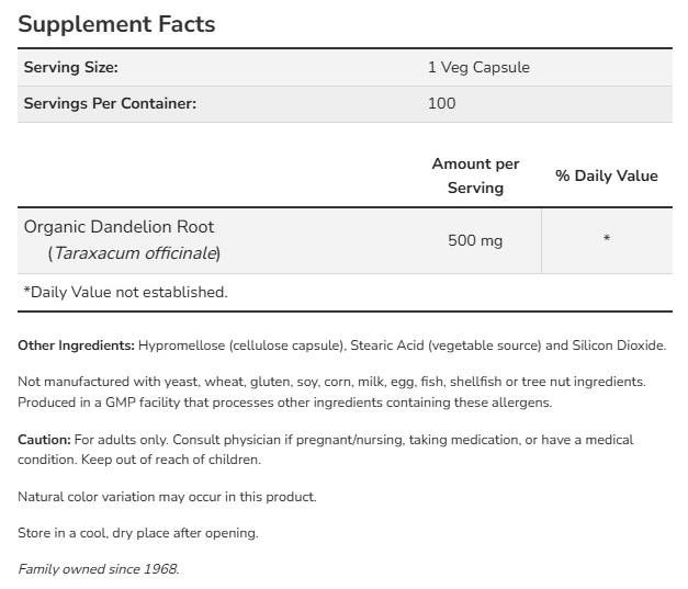 Начало Марки NOW Foods NOW Foods Dandelion Root 500 mg [100 капсули]