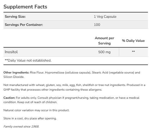 NOW Foods Inositol 500 mg [100 капсули, 100 Дози]