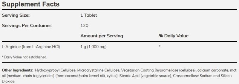 NOW Foods L-Arginine 1000 mg / Double Strength [120 Таблетки]