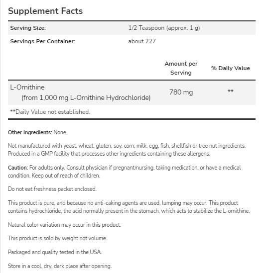 NOW Foods L-Ornithine Powder [227 грама, 227 Дози]