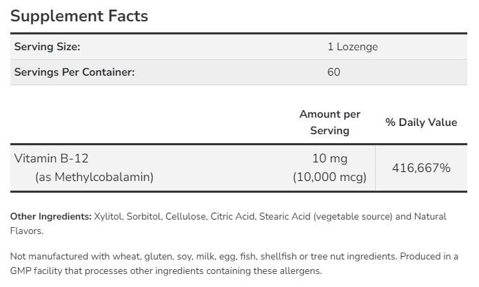 NOW Foods Methyl B-12 10000 mcg [60 Подезични таблетки , 60 Дози]