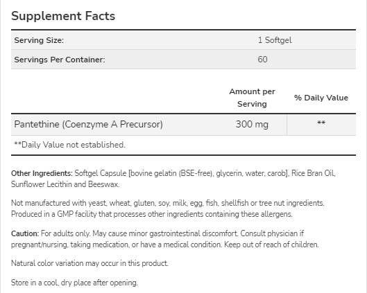 NOW Foods Pantethine 300 mg [60 Гел капсули, 60 Дози]