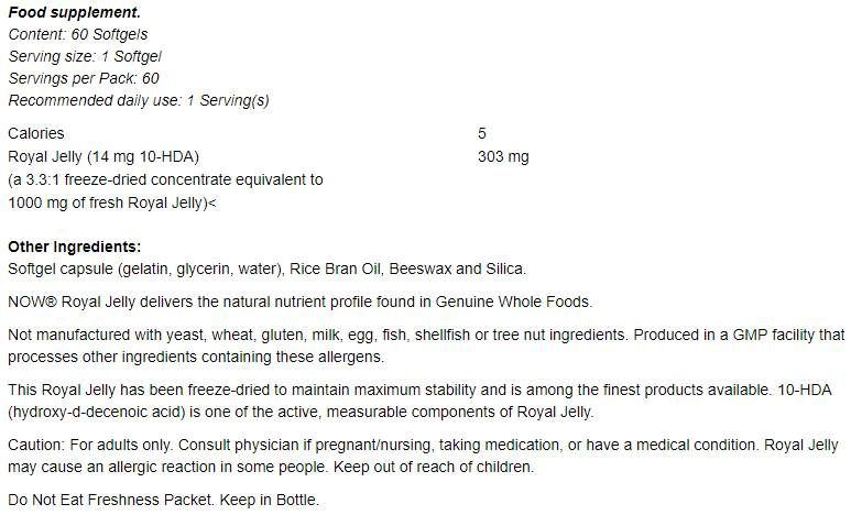 NOW Foods Royal Jelly 1000 mg [60 Гел капсули, 60 Дози]