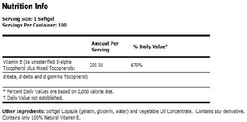 NOW Foods Vitamin E-200 IU D-Alpha Tocopherols [100 Гел капсули, 100 Дози]