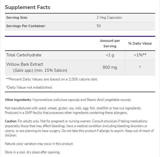 NOW Foods Willow Bark Extract 400 mg [100 капсули, 50 Дози]