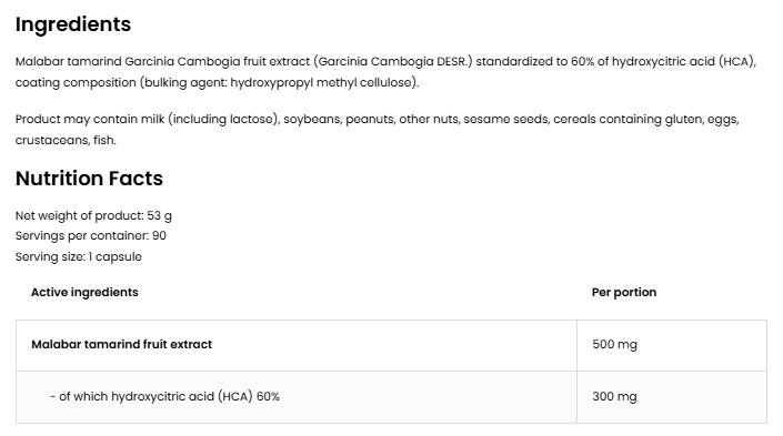 OstroVit Garcinia Cambogia 500 mg - 60% HCA / Vege [90 капсули, 90 Дози]
