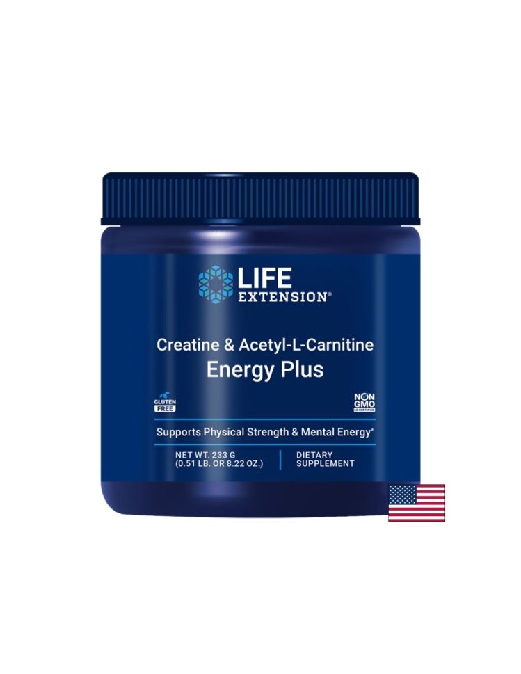 Начало Марки Life Extension Креатин 5000 mg + Ацетил-L-карнитин 2000 mg – Енергия и мускулна издръжливост, 233 g прах, 30 дози