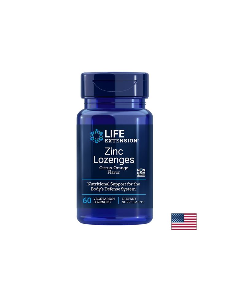 Цинк / Zinc Lozenges, 60 V-таблетки за смучене е хранителна добавка на Life Extension, САЩ. С вкус на портокал. Формулата допринася за нормалното функциониране на имунната система. Таблетките за смучене са с цитрусово-портокалов вкус и предлагат мощна подкрепа за имунното здраве и насърчават здравословния протеинов синтез. Тези таблетки са подходящи за вегетарианци и са без глутен и ГМО.
