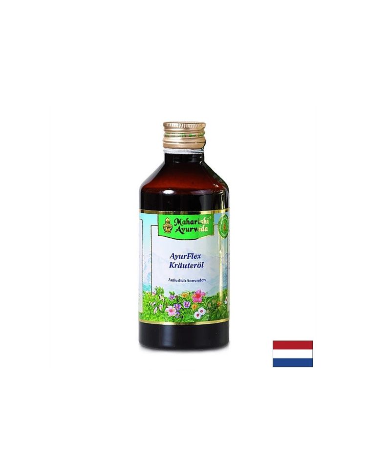Maharishi Ayurveda® AyurFlex Kräuteröl / Maharishi Ayurveda® Билково масло AyurFlex, масажно масло 100 ml, е козметичен продукт от серията Maharishi Ayurveda. Продуктът не съдържа изкуствени оцветители, аромати и консерванти. Формулата включва богато разнообразие от етерични масла и екстракти, а в основата е сусамовото масло. Козметичният продукт подпомага детоксикацията на организма и доброто състояние на ставите и мускулите. Има загряващо и отпускащо действие върху тялото.