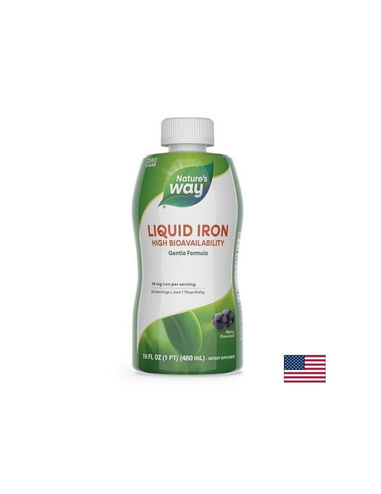 Liquid Iron на американската компания Nature’s Way естествен продукт с приятен вкус на боровинки за поддържане на когнитивните функции и образуването на хемоглобин и червени кръвни телца.