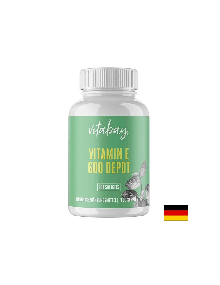 Хранителната добавка на Vitabay® Vitamin E 600 Depot е извлечен от висококачествено натурално соево мосло и ще подсигури необходимото количество от витамин Е. Депо продукт: всяка капсула съдържа 600 IU витамин, еквивалент на 300 IU дневно.