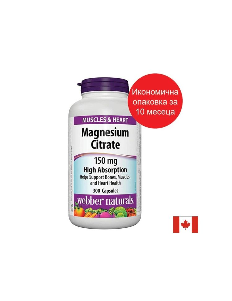 Магнезий цитрат е естествен продукт, източник на магнезий с максимална степен на усвояване на канадската компания Webber Naturals. Допринася за поддържане на нормално състояние на метаболизма на въглехидратите, мазнините и белтъчините/протеините.