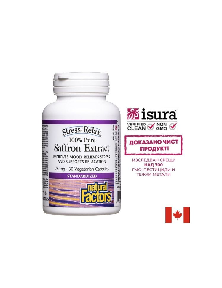 Pure Saffron Extract на канадската компания Natural Factors е натурален продукт допринасящ за поддържане на нормалното състояние на нервната система.