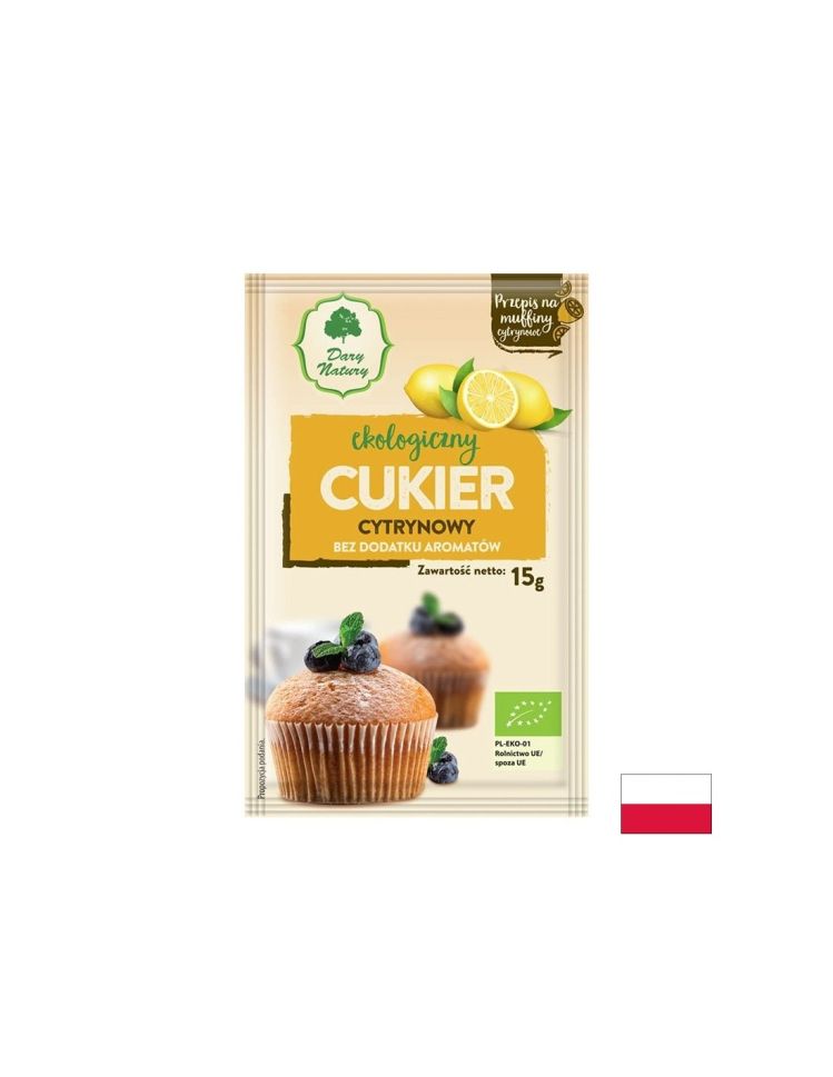 Био лимонова захар с естествени аромати на био лимон и върбинка подходяща за подслаждане на напитки и десерти