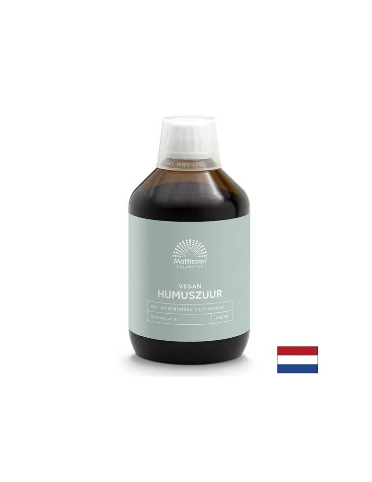 Веган хуминовата киселина Mattisson съдържа не по-малко от 260 mg хуминова киселина и 60 mg свързана фулвова киселина на 10 ml. Хуминовите киселини (хумати) са биологични съединения с естествен произход. Срещат се навсякъде в природата като продукт на разпадане на органични вещества. Всеки човек получава хуминова киселина чрез храни, като месо от тревопасни животни, кафе, чай, определени видове бира и кори от хляб. Солите на хуминовите киселини трудно се разграждат във водна среда и запазват първоначалната си структура.