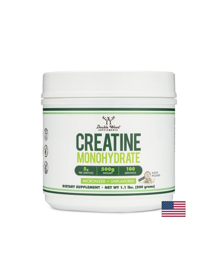 Creatine Monohydrate / Креатин Монохидрат (микронизиран, неовкусен), 500 g, e хранителна добавка на американската компания Double Wood Supplements. Марката е производител на висококачествени добавки и ноотропни средства, сертифицирани при строг контрол на качеството в САЩ.