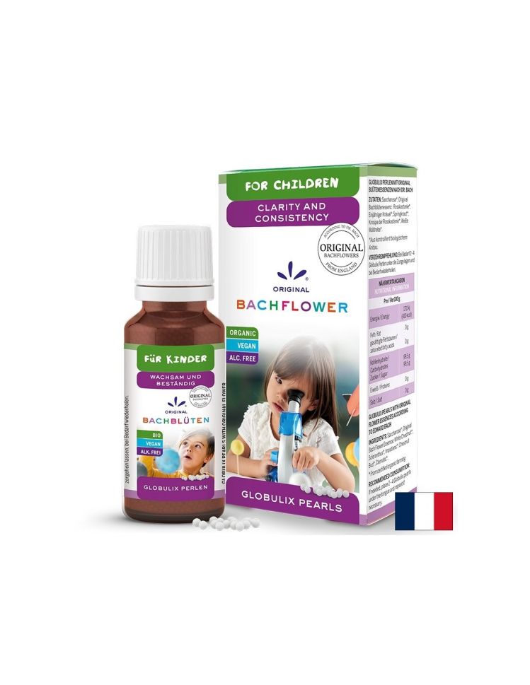 Clarity and Consistency for Children Original Bachflower Globulix pealrs / Детски глобули на д-р Бах Фокус, 20 g, е хранителна добавка, която подпомага концентрацията при децата. Продуктът е специално създаден като съчетание от оригиналните цветни есенции на д-р Бах, за да подпомогне концентрацията и вниманието при децата. Цветните есенции са произведени по методите на биологичното земеделие.