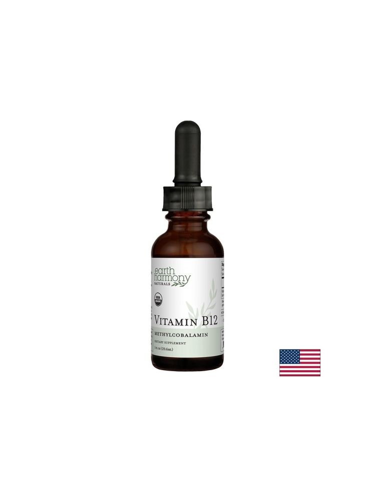 Vitamin B12 / Витамин В12 (метилкобаламин), 29.6 ml капки e хранителна добавка на Earth Harmony Naturals, САЩ. Формулата включва Витамин B12 по формата метилкобаламин. Продуктът не съдържа захар, овкусители, оцветители, глутен и ГМО. Допринася за поддържане на нормалното състояние на нервната система. Продуктът е подходящ за хора, които търсят подкрепа за нервната функция, енергийния метаболизъм и общото здравословно състояние.