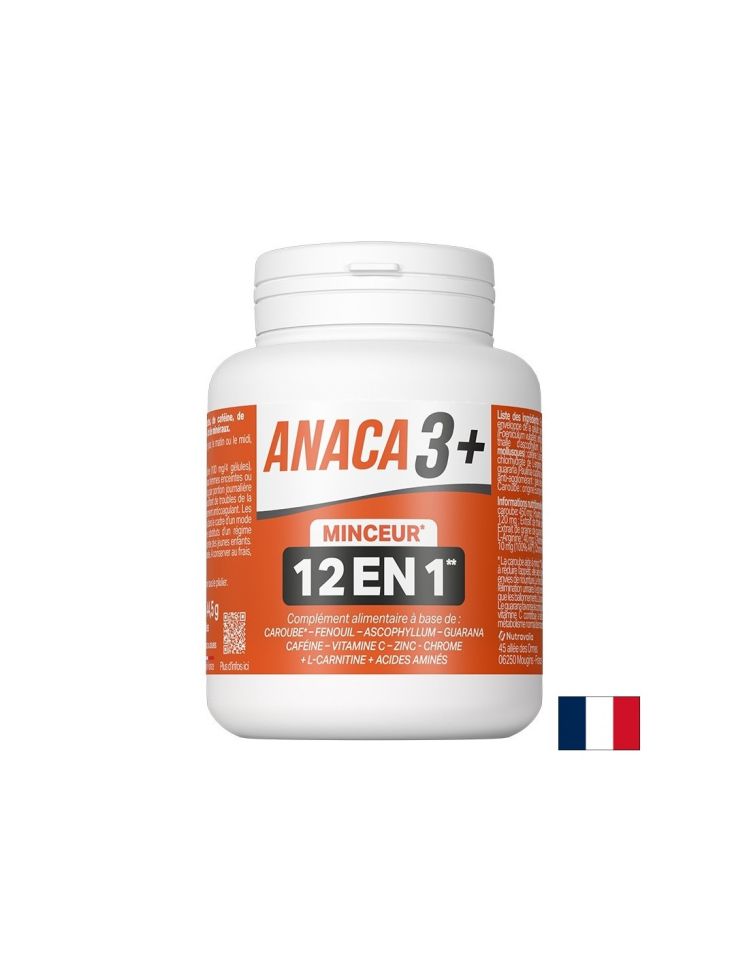 Anaca3+ Minceur 12 en 1 / Анака3+ Формула за оптимално телесно тегло 12 в 1, 120 капсули е хранителна добавка на френската компания Nutravalia. Продуктът подпомага поддържането на нормално телесно тегло.