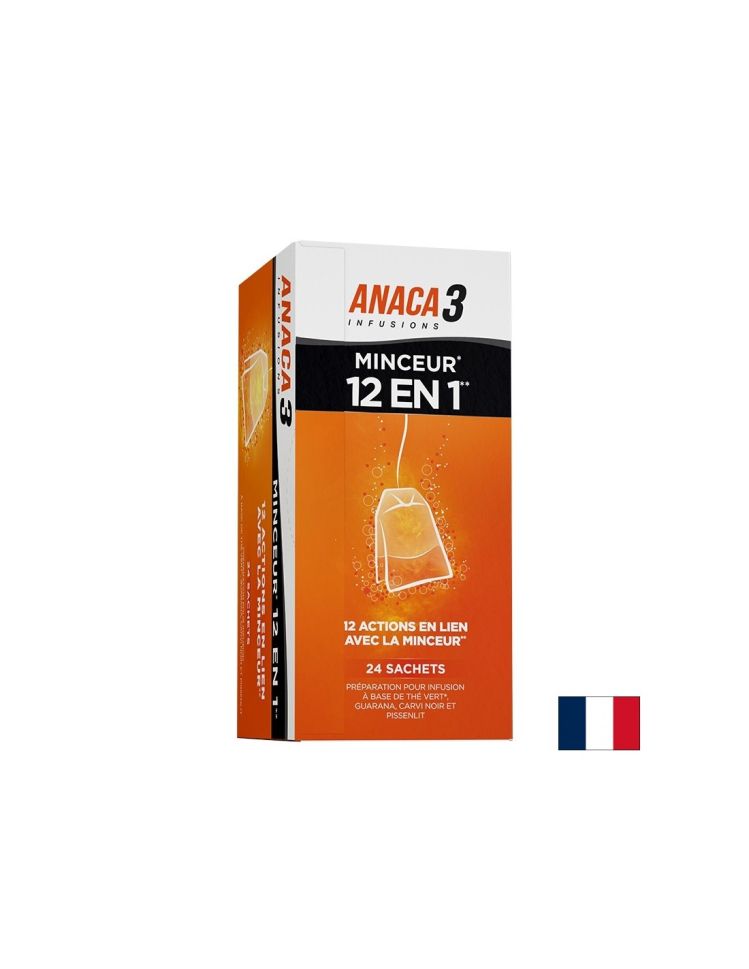 Anaca3 Infusion Minceur 12 en 1 / Анака3 Билков чай за отслабване , 24 филтърни пакетчета е здравословен продукт на френската компания Nutravalia. Формулата на билковия чай подпомага поддържането на нормално телесно тегло.