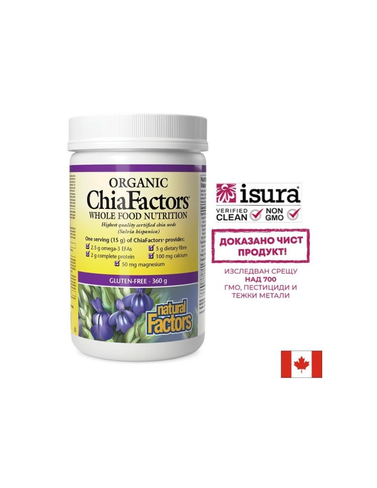 Organic ChiaFactors® Whole food nutrition на канадската компания Natural Factors е естествен продукт допринасящ за енергийния метаболизъм.