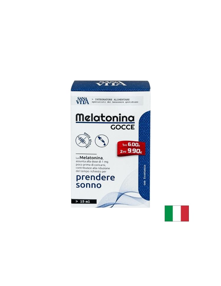 Sanavita Melatonina Gocce / Мелатонин 1 mg, капки, 15 ml е хранителна добавка на Paladin Pharma, Италия. Продуктът е предназначена да подпомогне по-бързото заспиване и подобряване на качеството на съня.