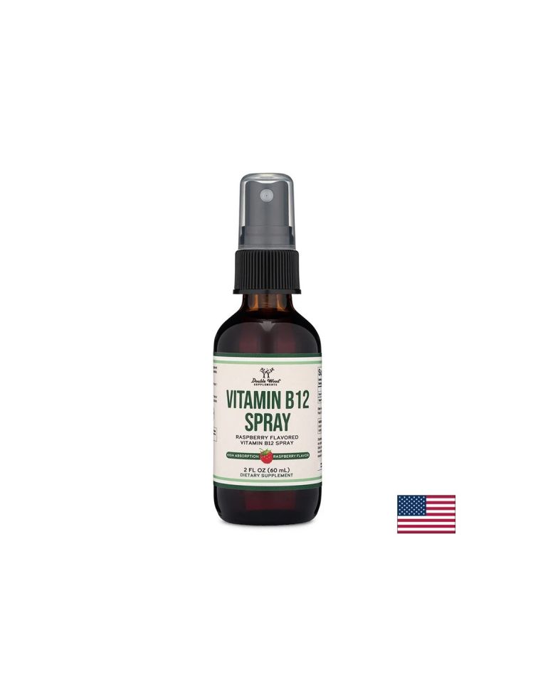 Vitamin B12 Spray / Витамин В12 (метилкобаламин) 500 µg, спрей. 60 ml, с вкус на малина, 125 дози е хранителна добавка на Double Wood® Supplements, САЩ. Формулата съдържа метилкобаламин - форма на витамин В12, известна със своята висока бионаличност и ефективност. Хранителната добавка допринася за нормалното кръвообразуване и нормалното състояние на нервната система.