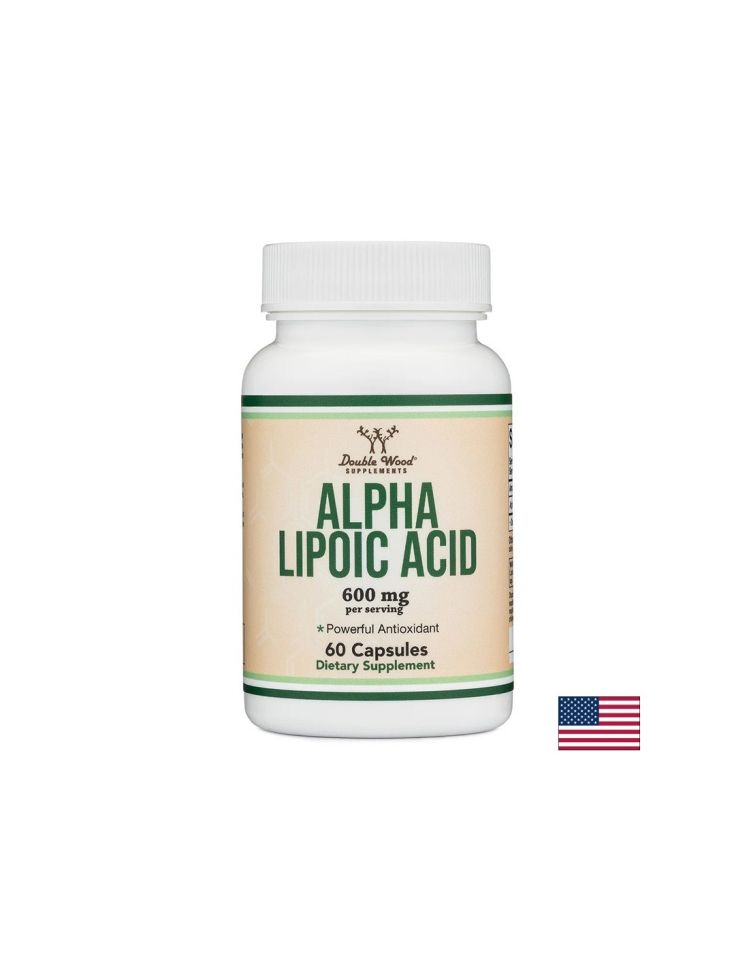 Alpha Lipoic Acid / Алфа- липоева киселина 300 mg, 60 капсули е хранителна добавка на Double Wood® Supplements, САЩ. Продуктът допринася за поддържане на нормален глюкозен метаболизъм, както и оптимално клетъчно здраве.