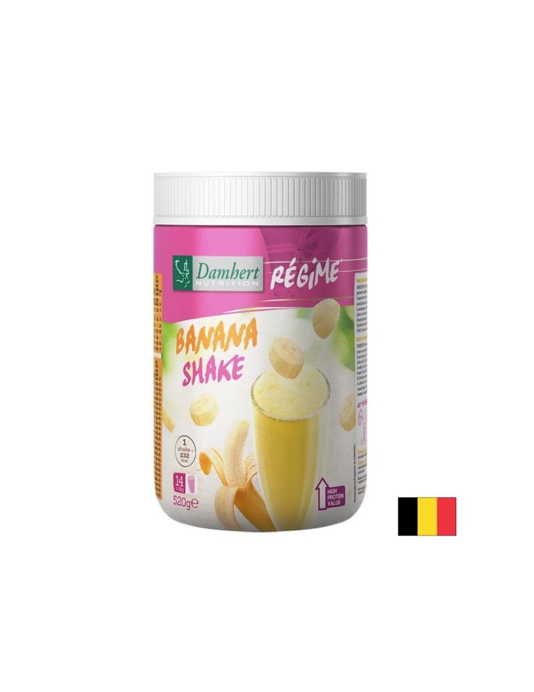 Regime Shake Banana flavour / Шейк Банан (със суроватъчен протеин), 520 g прах е висококачествен протеинов шейк с приятен бананов вкус, разработен специално за активно спортуващи и хора с интензивно мускулно натоварване. Този белтъчен концентрат в прахообразна форма осигурява оптимален баланс на протеини, въглехидрати, полезни мазнини и витамини, които подкрепят възстановяването, мускулния растеж и общото състояние на организма. В една опаковка от 520 г се съдържат 14 дози (по 36 г на доза), лесни за приготвяне и подходящи за прием след тренировка или като допълнителна порция протеин през деня.